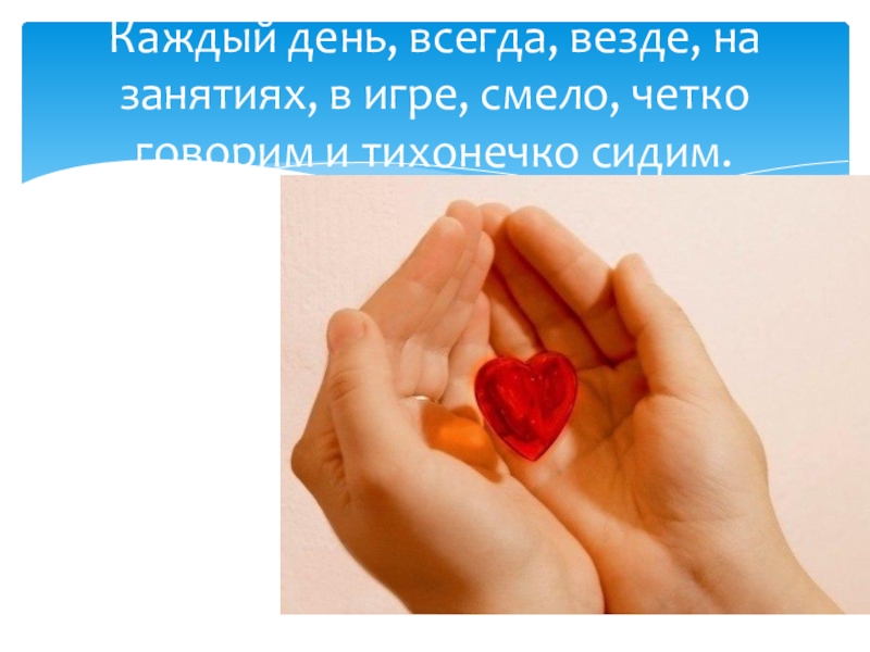 Каждый день, всегда, везде, на занятиях, в игре, смело, четко говорим и тихонечко сидим.