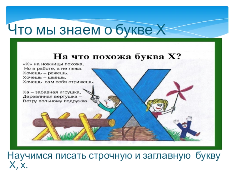 Что мы знаем о букве Х Научимся писать строчную и заглавную букву Х, х.