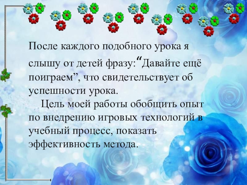 Слайд 3После каждого подобного урока я слышу от детей фразу:“Давайте ещё поиграем”,