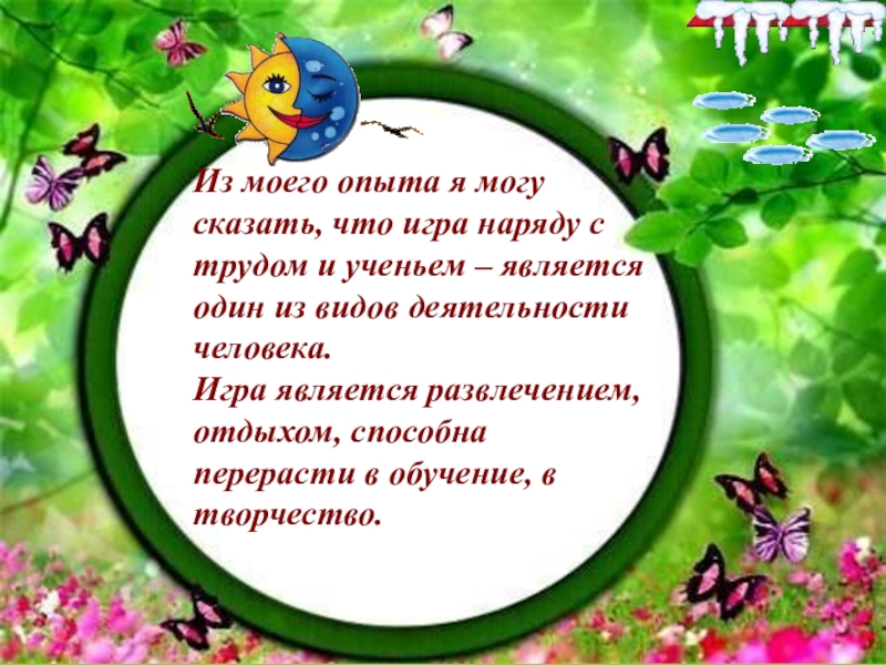 и ученьем – является один из видов деятельности человека. Игра является развлечением, отдыхом, способна перерасти в обучение, в творчество.