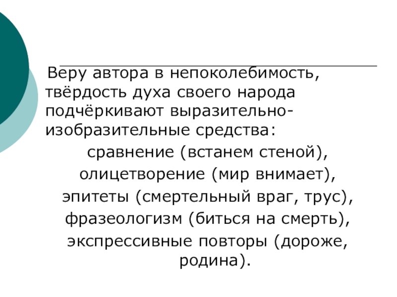 Слайд 20 Веру автора в непоколебимость, твёрдость духа своего народа подчёркивают