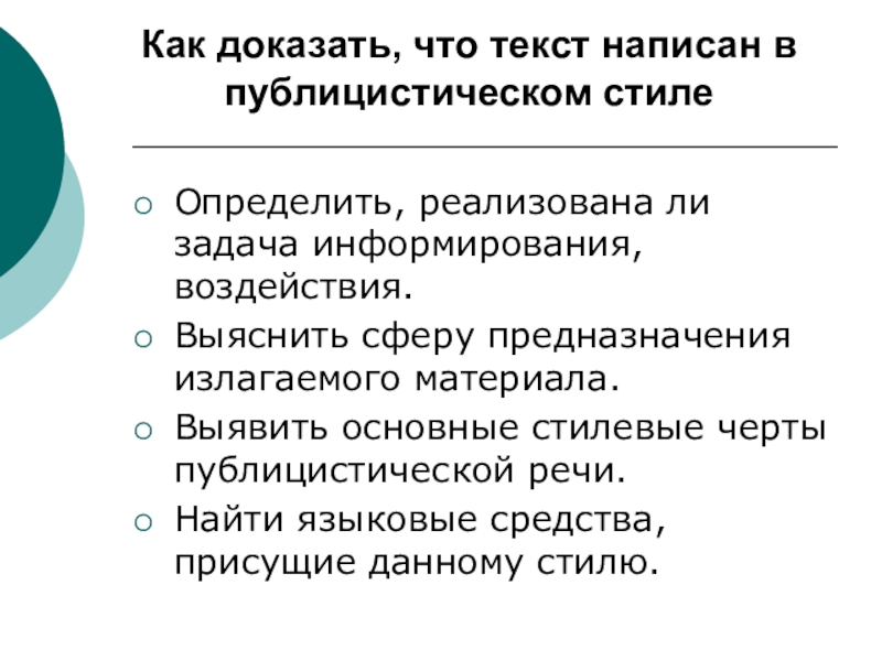 Слайд 17Как доказать, что текст написан в публицистическом стиле