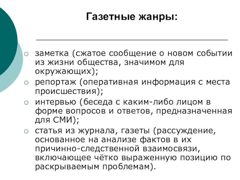 Слайд 13Газетные жанры: