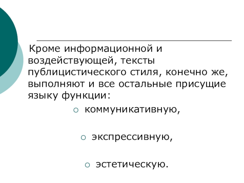 Слайд 8 Кроме информационной и воздействующей, тексты публицистического стиля, конечно же,