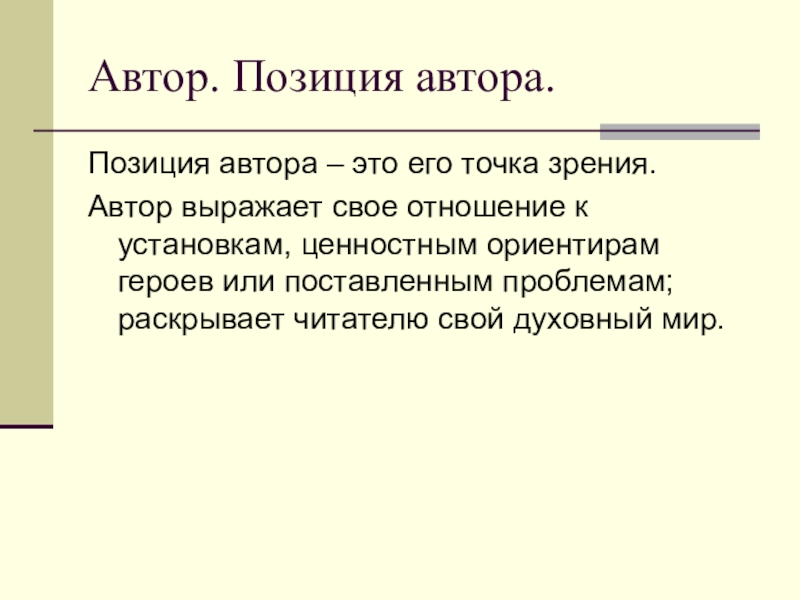 свое отношение к установкам, ценностным ориентирам героев или поставленным проблемам; раскрывает читателю свой духовный мир.