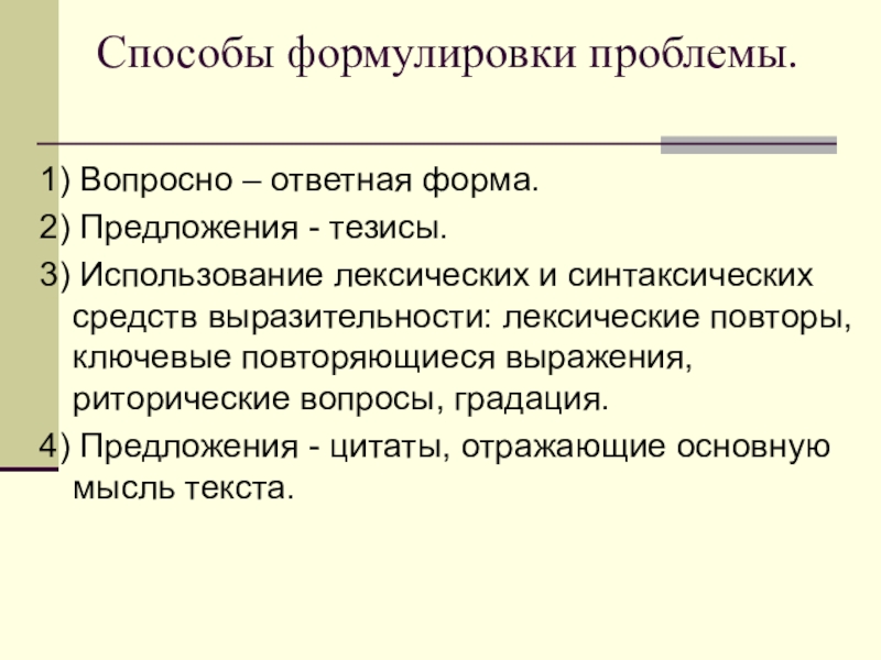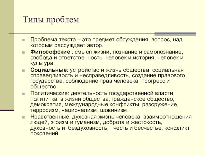 Проблема текста – это предмет обсуждения, вопрос, над которым рассуждает