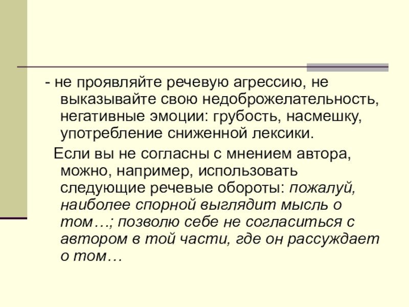 - не проявляйте речевую агрессию, не выказывайте свою недоброжелательность, негативные эмоции: