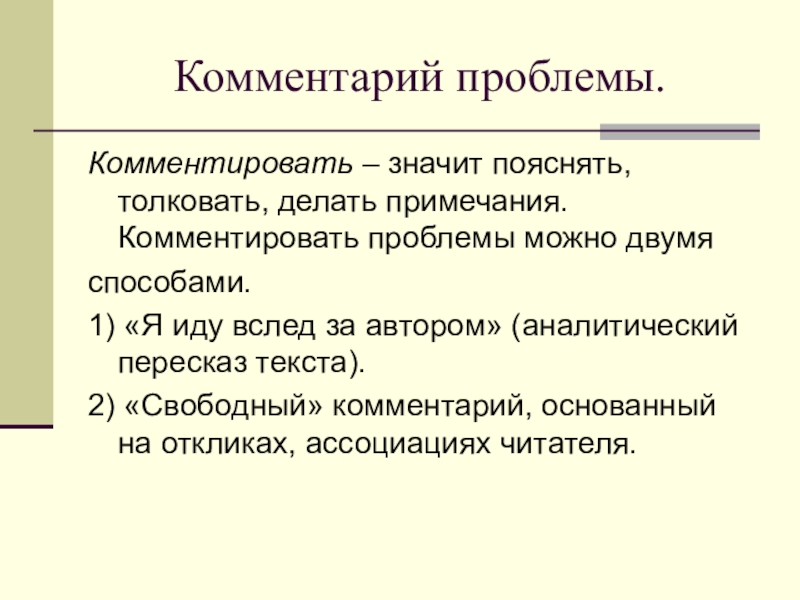 Комментировать – значит пояснять, толковать, делать примечания. Комментировать проблемы можно