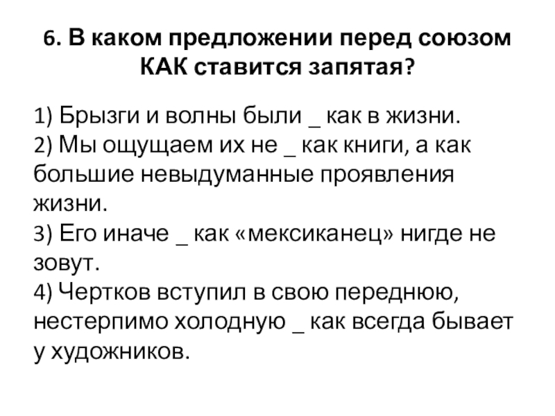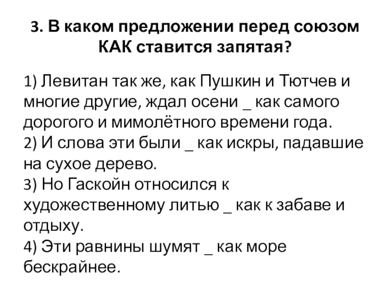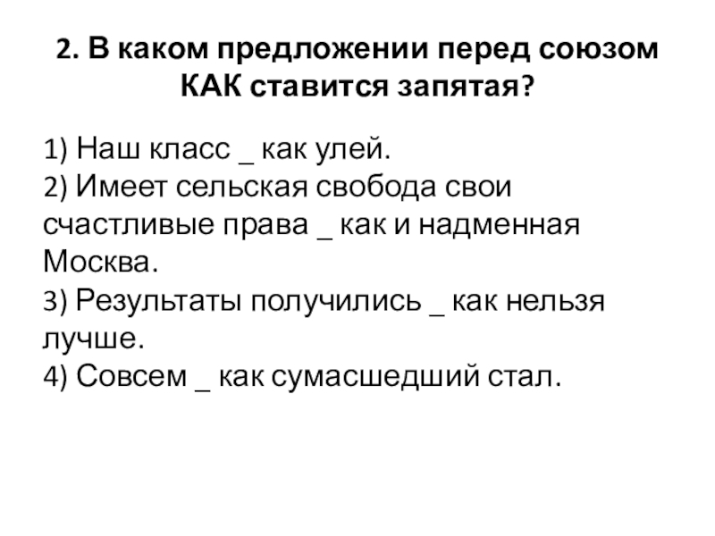 Слайд 65. В каком предложении перед союзом КАК ставится запятая?