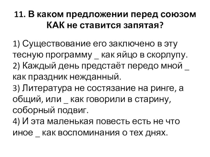 Слайд 1211. В каком предложении перед союзом КАК не ставится запятая?