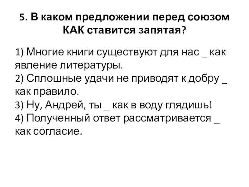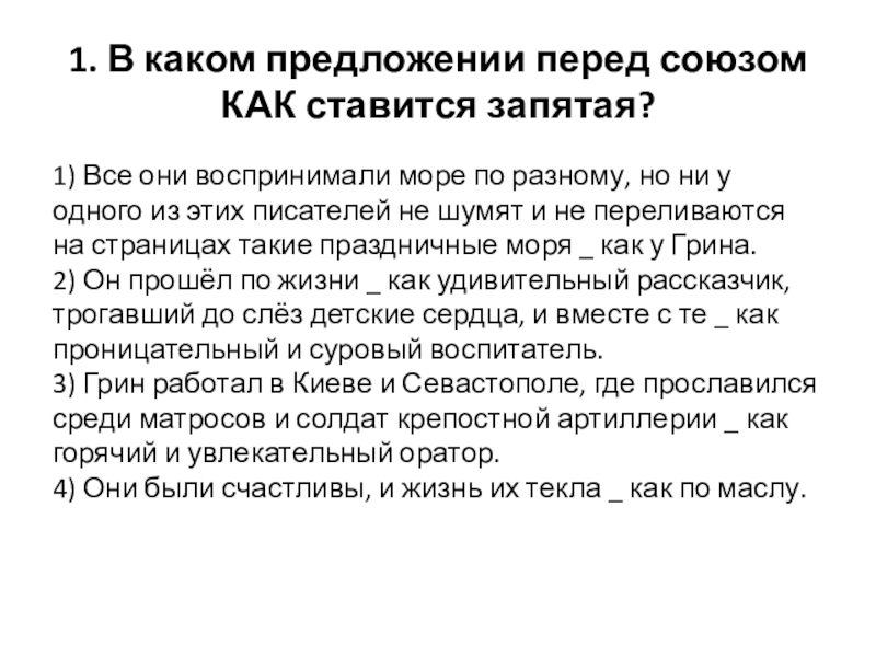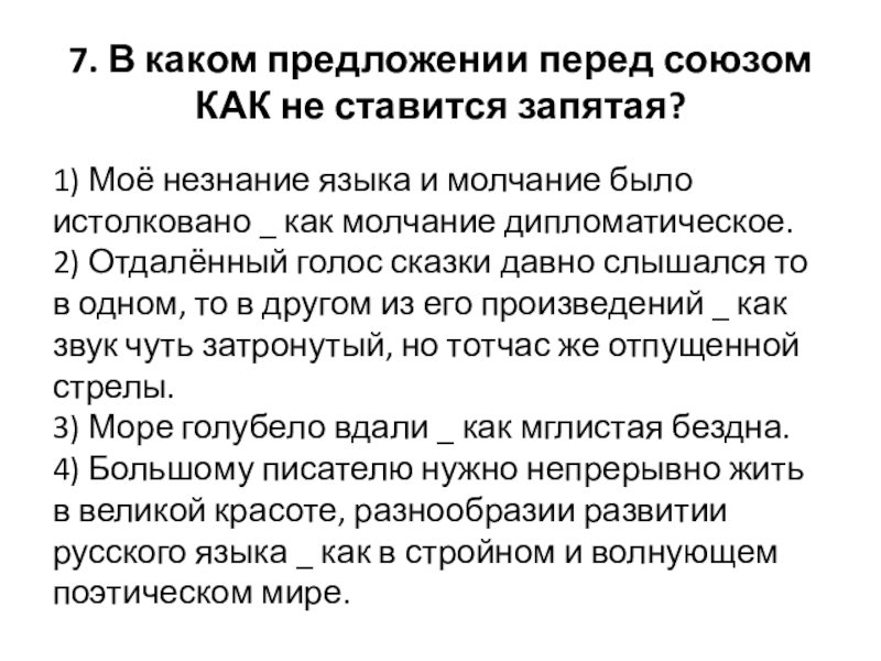 Слайд 21. В каком предложении перед союзом КАК ставится запятая?