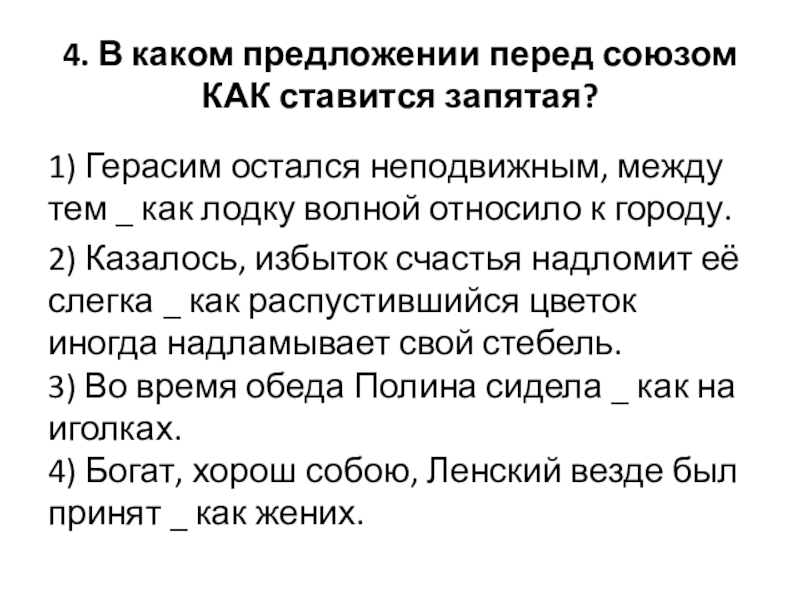Слайд 54. В каком предложении перед союзом КАК ставится запятая?