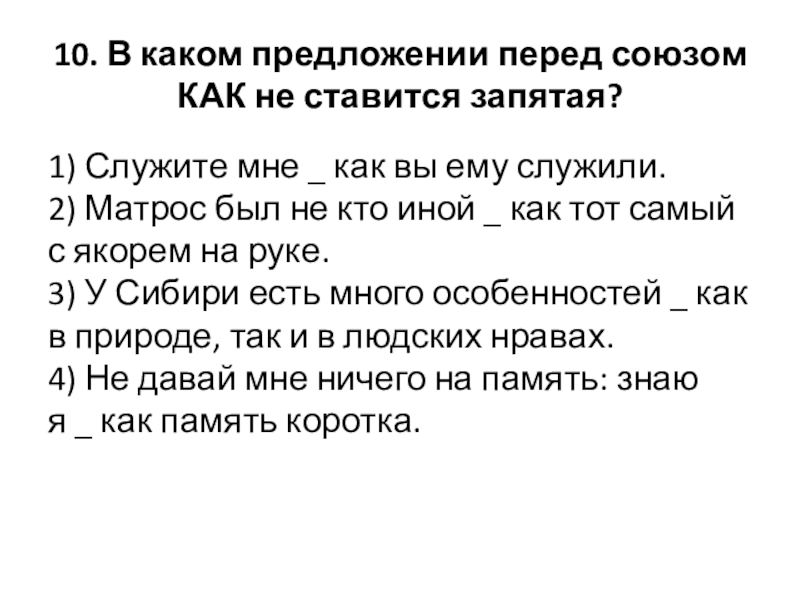 Слайд 1110. В каком предложении перед союзом КАК не ставится запятая?