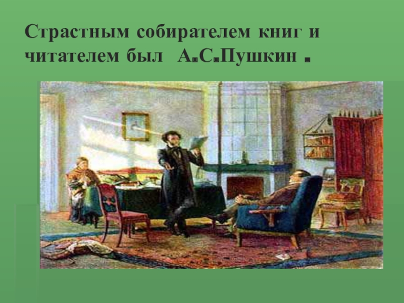 Слайд 29Страстным собирателем книг и читателем был А.С.Пушкин .