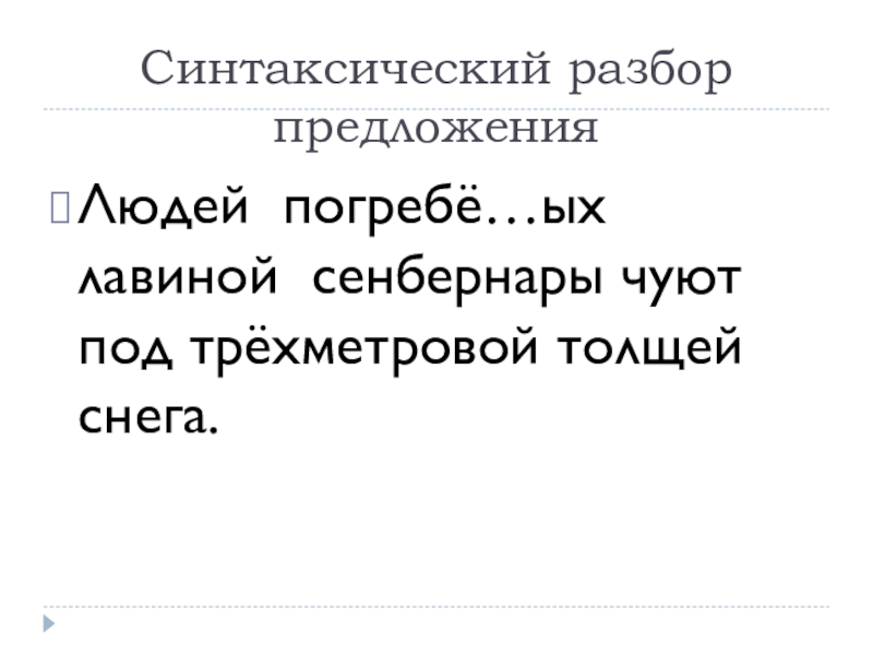 Синтаксический разбор предложенияЛюдей погребё…ых лавиной сенбернары чуют под трёхметровой толщей снега.