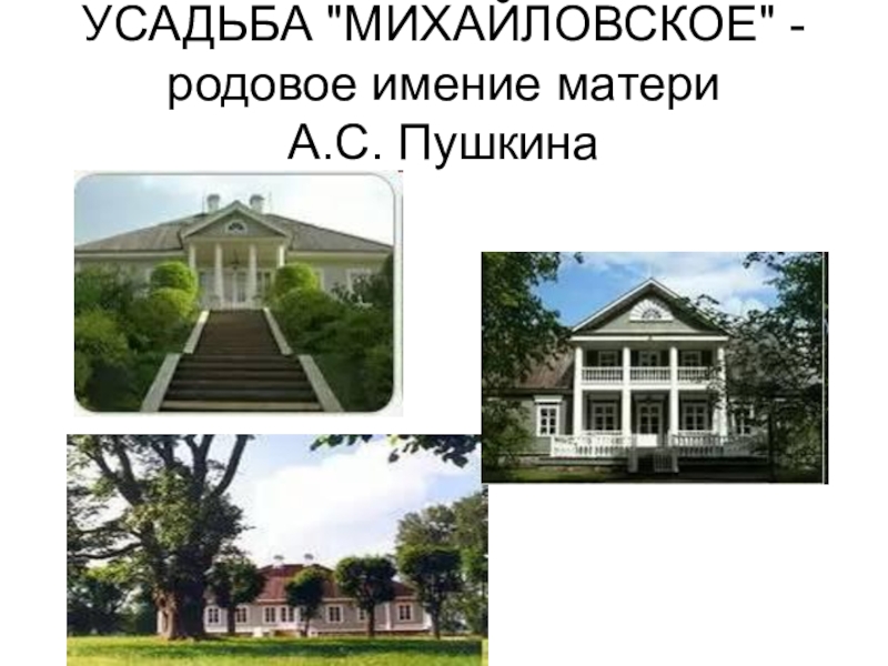 Слайд 9УСАДЬБА "МИХАЙЛОВСКОЕ" - родовое имение матери А.С. Пушкина