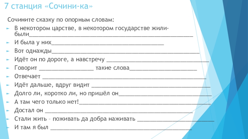 Слайд 8 7 станция «Сочини-ка»