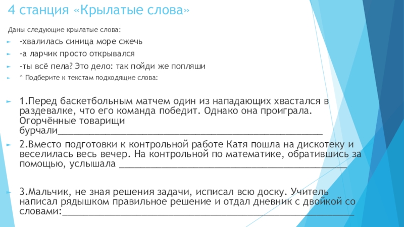 Слайд 54 станция «Крылатые слова»