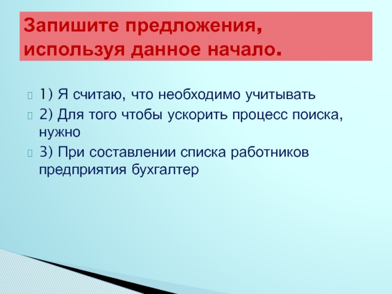 Запишите предложения, используя данное начало.