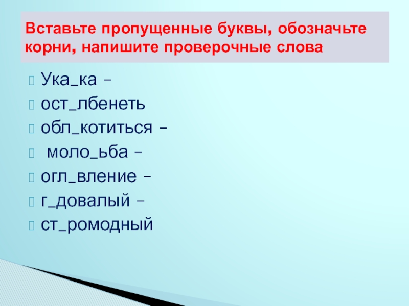 Вставьте пропущенные буквы, обозначьте корни, напишите проверочные слова