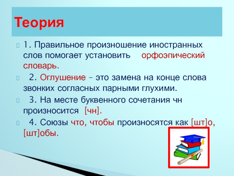 Слайд 71. Правильное произношение иностранных слов помогает установить орфоэпический словарь.