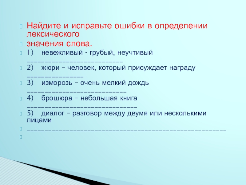 Слайд 18Найдите и исправьте ошибки в определении лексического