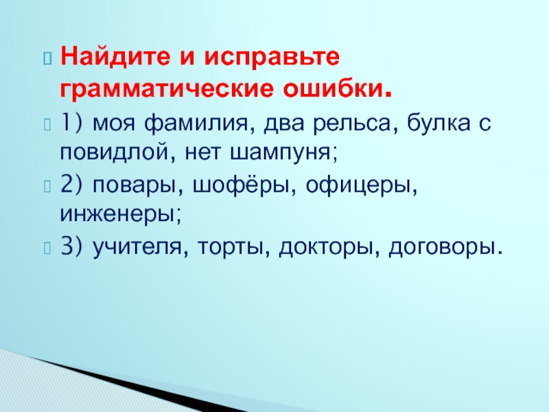 Слайд 19Найдите и исправьте грамматические ошибки.