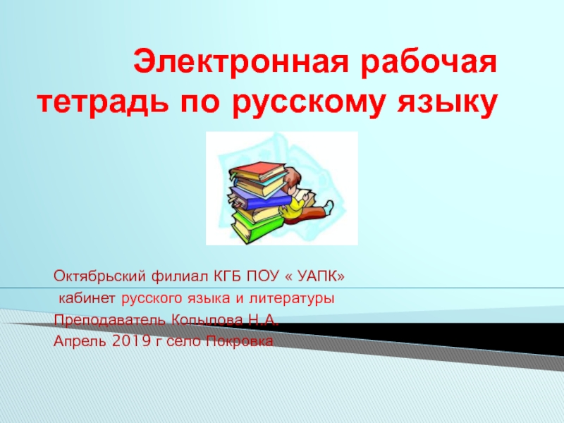 Слайд 1Электронная рабочая тетрадь по русскому языку