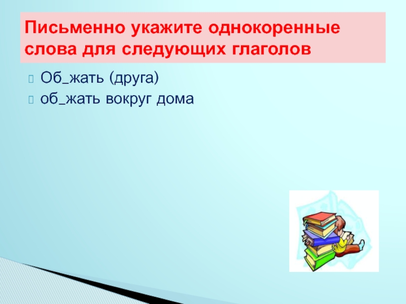 Слайд 6Об_жать (друга)