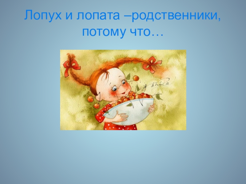 Слайд 5Лопух и лопата –родственники, потому что…