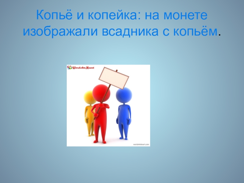 Слайд 3Копьё и копейка: на монете изображали всадника с копьём.