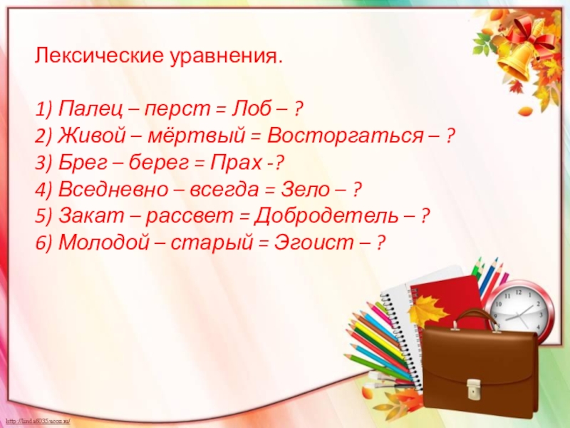 Слайд 11Лексические уравнения.