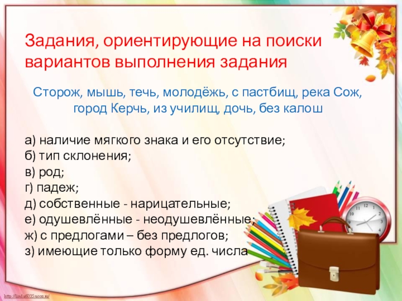 Слайд 9Задания, ориентирующие на поиски вариантов выполнения задания