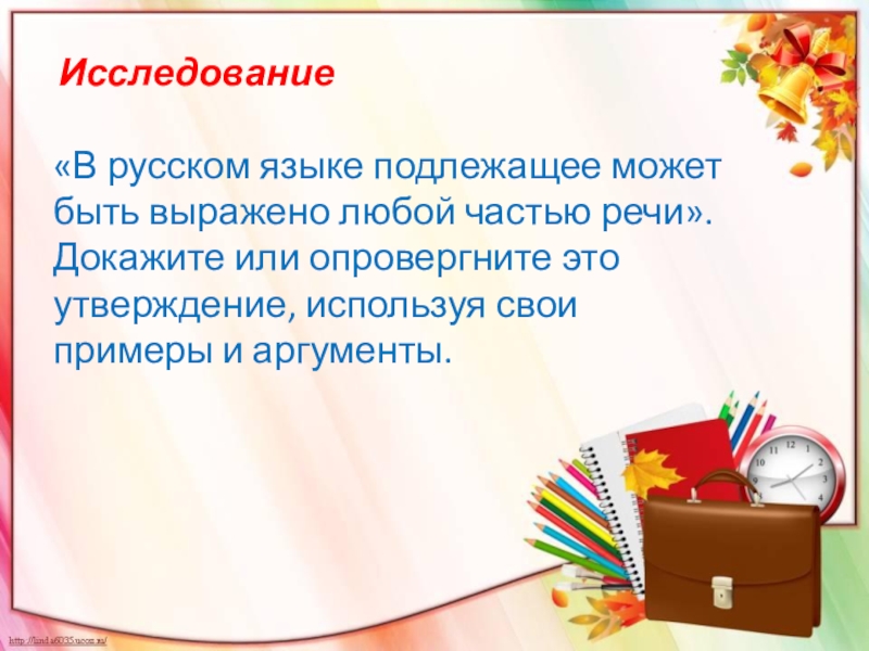 «В русском языке подлежащее может быть выражено любой частью речи». Докажите