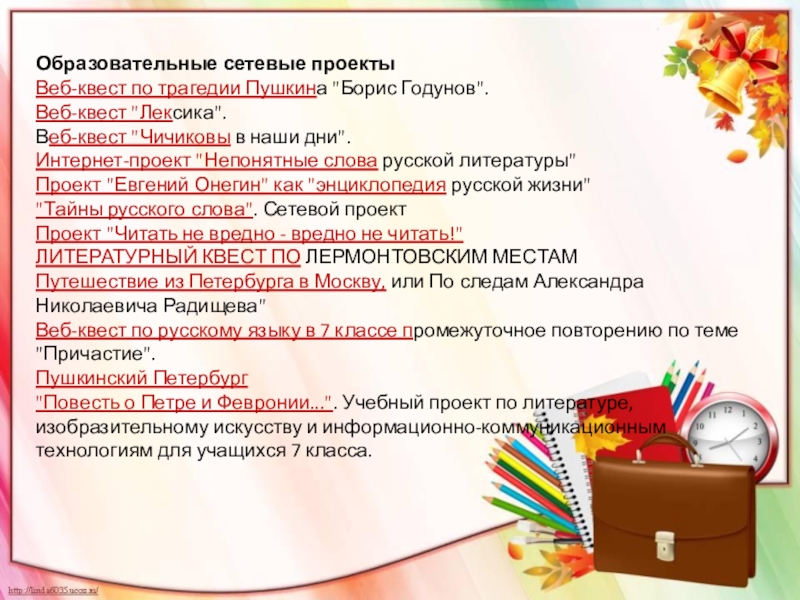 Слайд 17Образовательные сетевые проекты