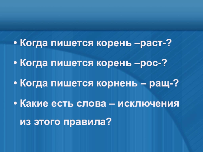 Когда пишется корень –раст-?Когда пишется корень –рос-?Когда пишется корнень – ращ-?Какие есть слова – исключения из этого