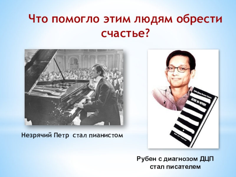 ничего не добьется в жизни. Он говорит: «…у него пока есть все шансы развить все остальные способности, чтобы хотя бы отчасти заменить свою слепоту…»