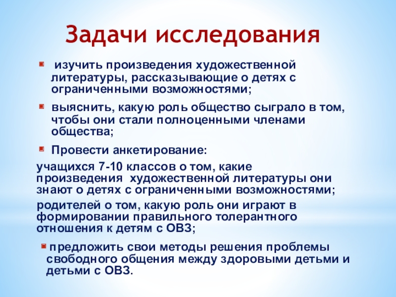 изучить произведения художественной литературы, рассказывающие о детях с ограниченными