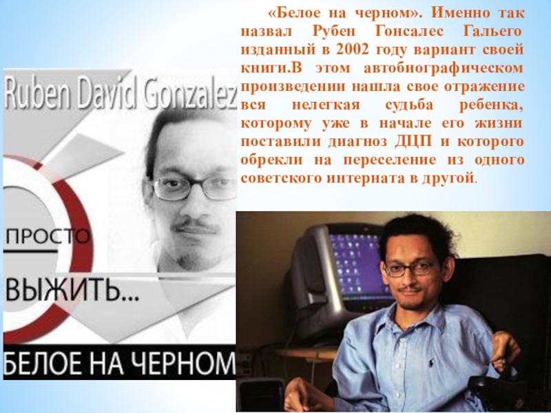 Слайд 9 «Белое на черном». Именно так назвал Рубен Гонсалес Гальего изданный в