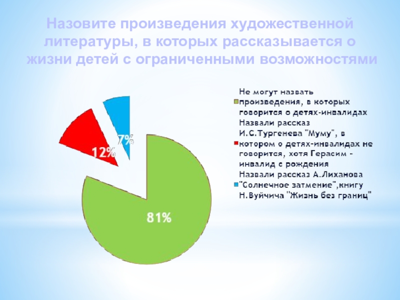 учащихся 7-10 классов о том, какие произведения художественной литературы они знают о детях с ограниченными возможностями;