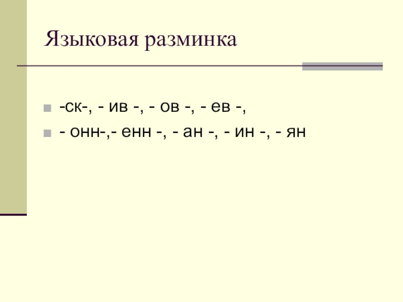 Языковая разминка-ск-, - ив -, - ов -, - ев -, - онн-,- енн -, - ан -, - ин -, - ян
