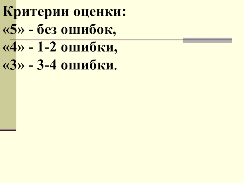 Критерии оценки: «5» - без ошибок, «4» - 1- ошибка, «3» - 2 ошибки.