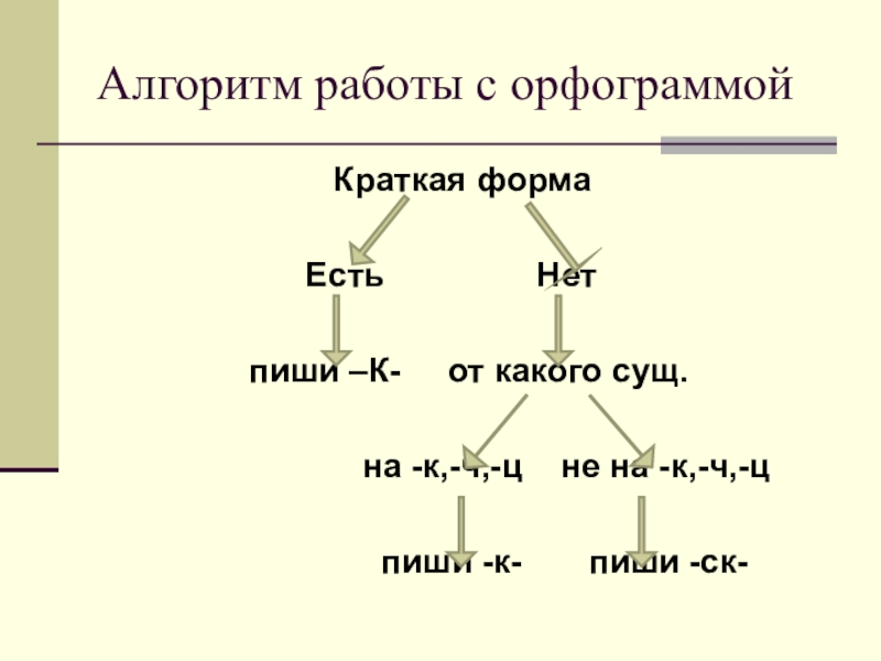 Алгоритм работы с орфограммойКраткая форма           Есть
