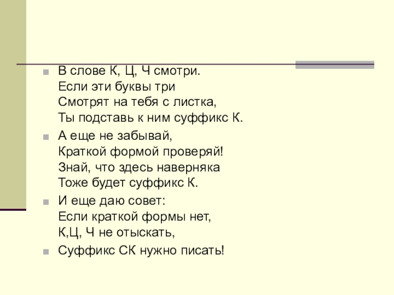 Слайд 5Когда пишется суффикс –К - и когда суффикс –СК-