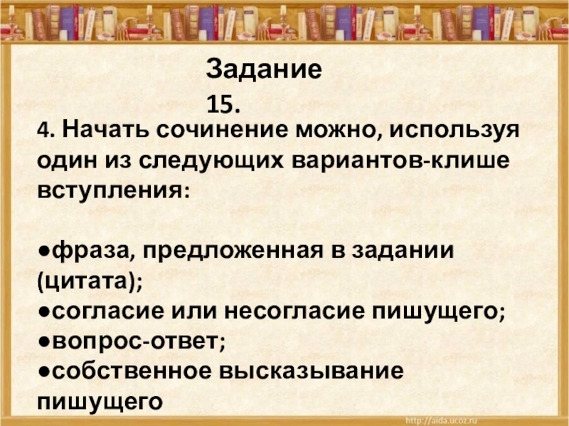 4. Начать сочинение можно, используя один из следующих вариантов-клише