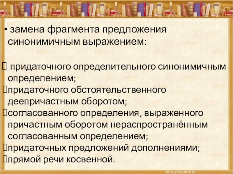 исключение уточняющих и поясняющих конструкций;