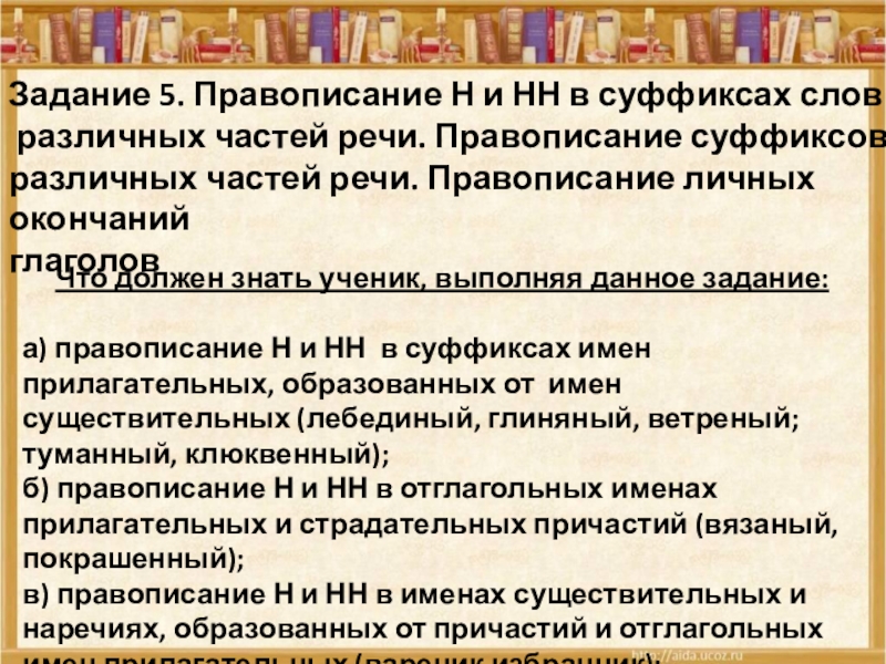Задание 5. Правописание Н и НН в суффиксах слов