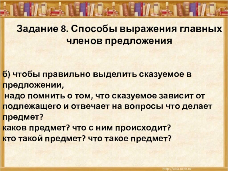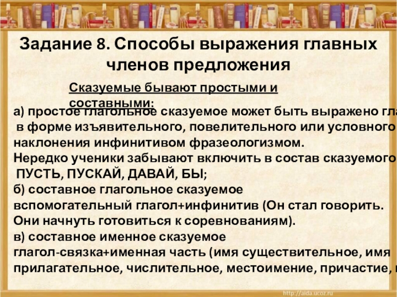 Задание 8. Способы выражения главных членов