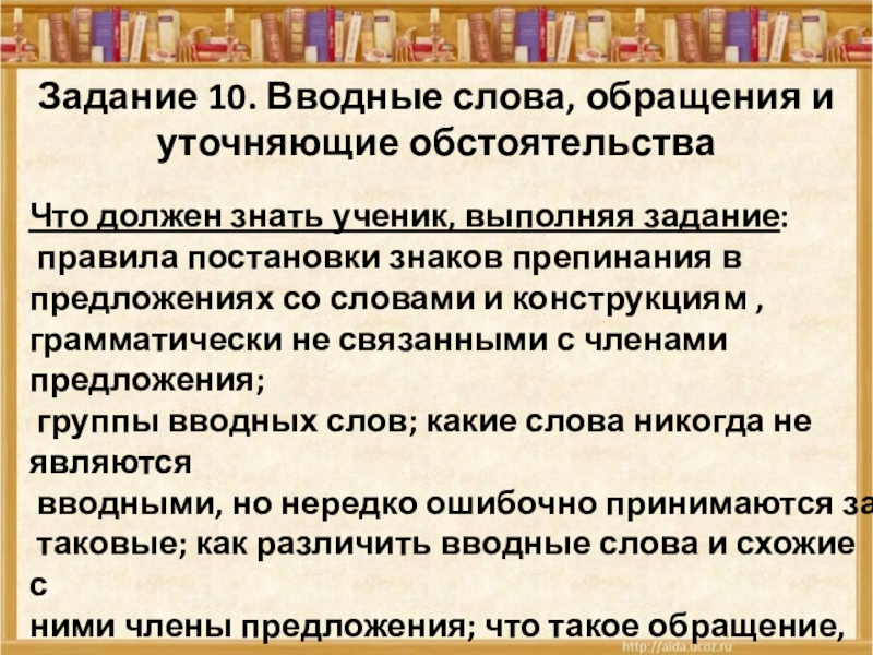 Задание 10. Вводные слова, обращения,