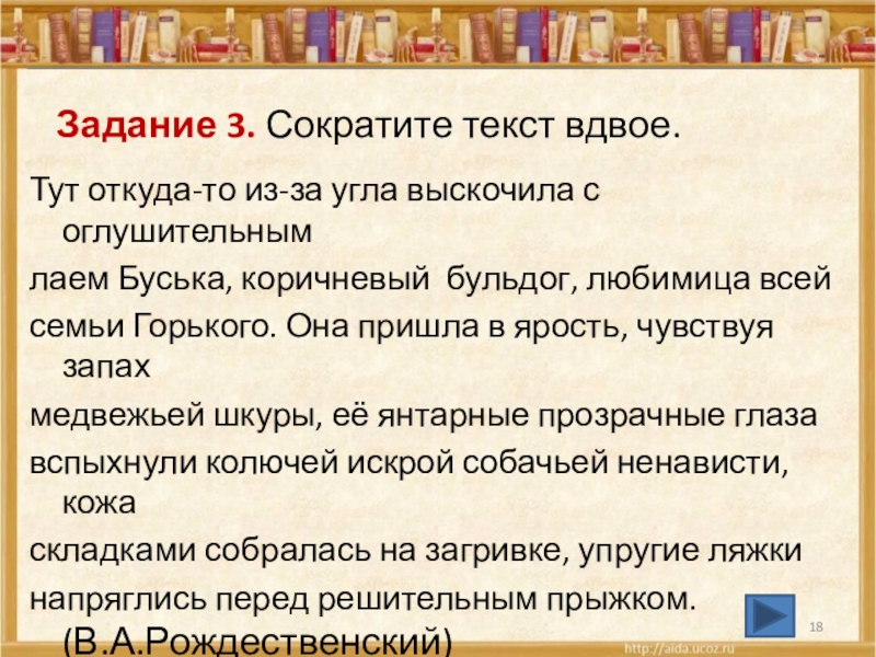 Слайд 18Задание 3. Сократите текст вдвое.